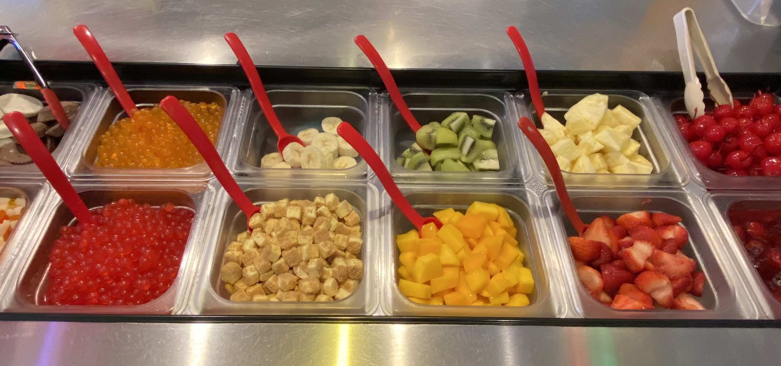 The thrill of creating a treat personalized to your taste buds is possible with our wide selection of frozen yogurt flavors alongside our extravagant toppings bar.